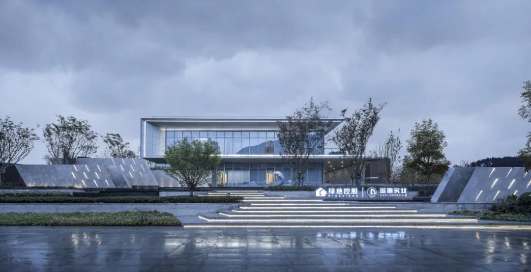 銷售中心通體以白色為主色調(diào),主要的建筑元素為仿船體的薄板結(jié)構(gòu),結(jié)合超白玻的玻璃幕墻,采用外伸的挑板構(gòu)成“S”形的立面造型;建筑材料則選用具有金屬光澤的穿孔鋁板作為表皮,在光線的助力下,完具輕盈、純凈的現(xiàn)代風(fēng)采。